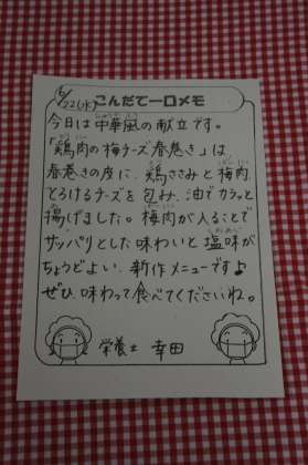 生徒の皆さんにはちょっと大人の味かも知れませんが、食欲を喚起するとても良い料理だと思いますし、とても美味しかったです。