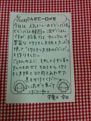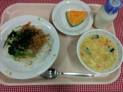 切り干し大根のビビンバ 中華風コーンスープ メロン