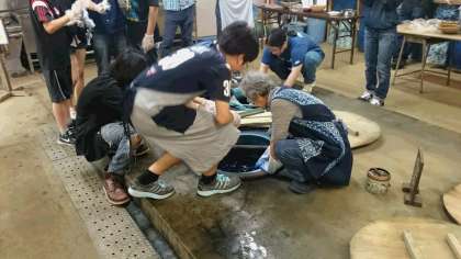 藍染体験の最中です。とても熱中しています。(副校長)