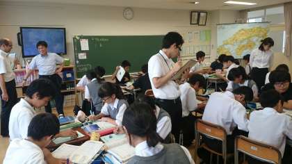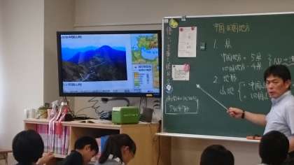 本日、本校の社会の指導教諭の先生が模範授業を行いました。