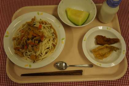 五目冷やしうどん 天ぷら(きす、かぼちゃ) メロン