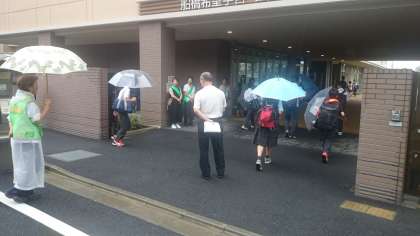 今日も雨の中、多くの保護者の方々があいさつ運動に参加してくださいました。
