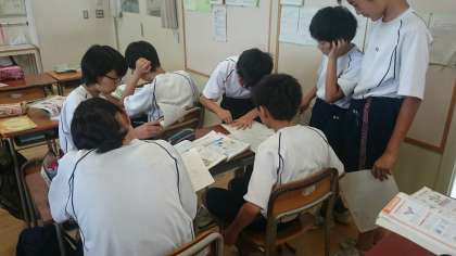 はじめは個々で学習し、その後、他の生徒と話し合うなどして、
