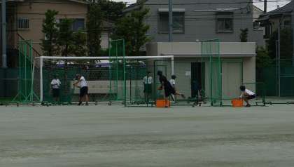 今朝は野球部が校庭で練習し、バレーボール部が外周を走っていました。