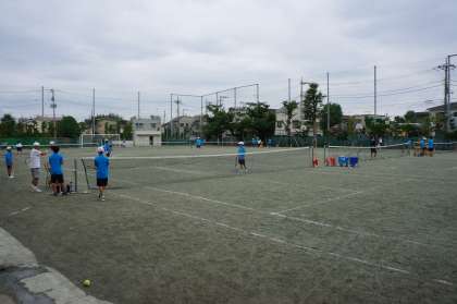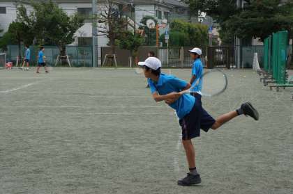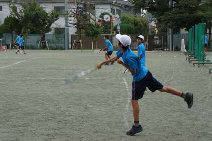 なかなかラリーが続きませんが、練習を続けていれば、先輩たちのように、打ち合いができるようになると思います。がんばれ!