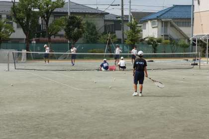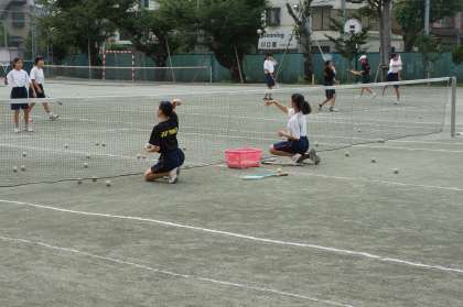 ボールが打ち返するネットの陰でトスボールを投げてくれる仲間がいます。