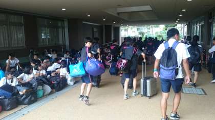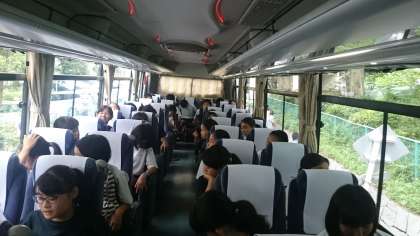 生徒たちは出発式を終え、8時40分にバスで、元気に出発しました。