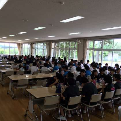 河口湖林間学園に到着し、開園式を行いました。 昼食後、早速練習開始です。 (稲見)