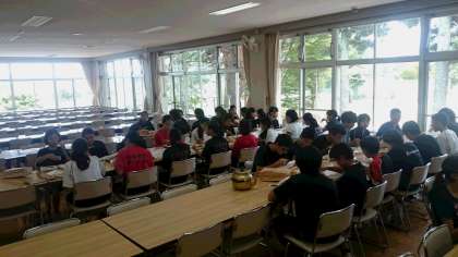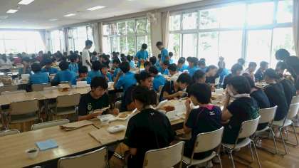 午前中の練習が終わり、昼食の時間です。(副校長)