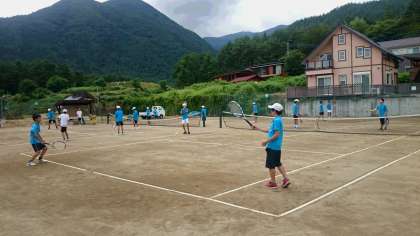 テニスコートは花や緑に囲まれたとてもよい環境の中にあります。(副校長)