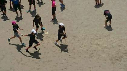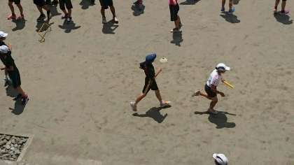 陸上部のエンドレスリレーは休憩を挟んで、午前中いっぱい続けられます。(副校長)
