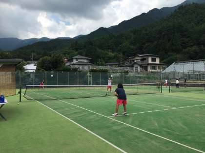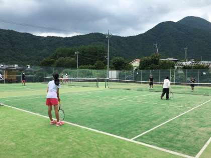 テニス部はゲーム形式の練習で実戦力も高めています。