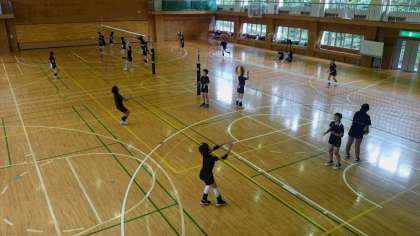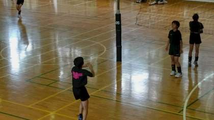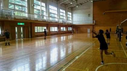女子バレーボール部は午後は体育館でがんばっています。(副校長)
