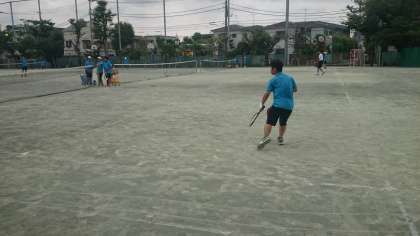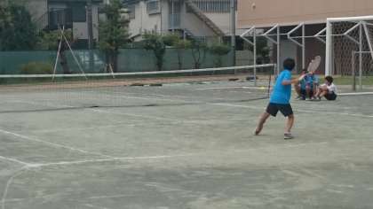 硬式テニス部は試合形式の練習をしています。