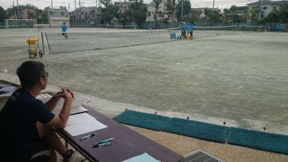生徒たちはコートを走り回りがんばっています。