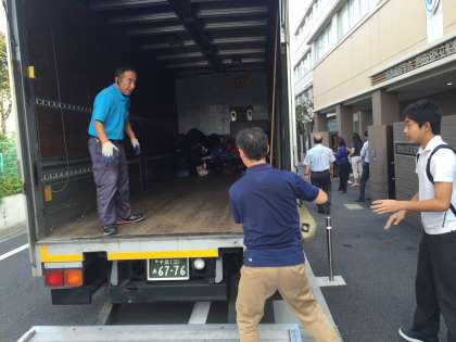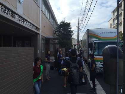修学旅行の荷物の積み込み
