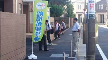 地域、保護者などたくさんの方々が見回り、あいさつをしてくださっています。