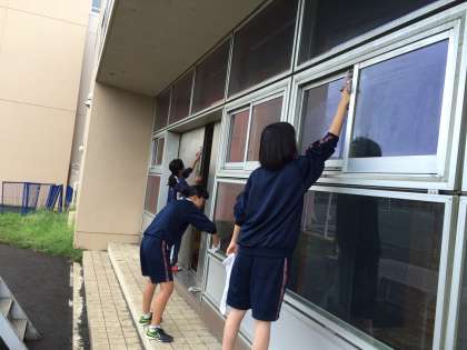体験先がお休みの生徒は、学校で作業をしています。 大居