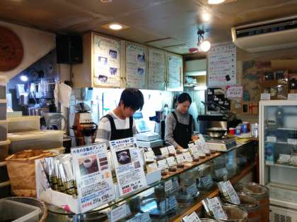 コーヒーモルディブ下北沢店では1人の生徒がカウンターで接客をしていました。