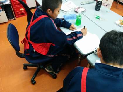 オオゼキ千歳船橋店では2名の生徒が昼食後に活動をふりかえっていました。