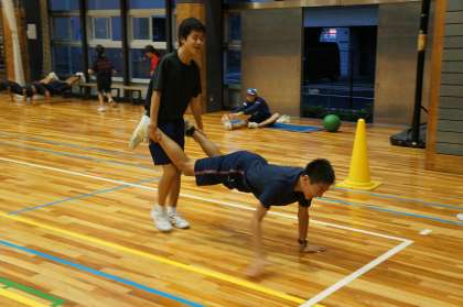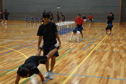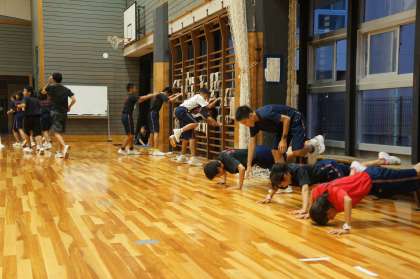 普段、寡黙・実直・誠実といったイメージの陸上部が今日は体育館で気合いの声を上げながら練習しています。