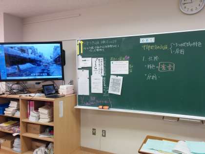 また、2学年理科でつい先週扱った日本の四季と、今回行った新潟・松本・浜松の気温・降水量の比較は内容的にクロスしており、生徒としても既習内容を教科の垣根を越えて反復して学ぶことで、学力の定着を図っていました。