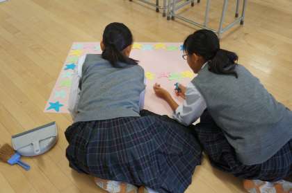 今朝は7時頃から登校している生徒もちらほらといて、2-6では合唱コンクールのスローガン作成を、2-2では指揮者と演奏者が練習を行っていました。