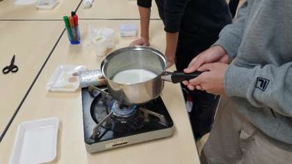 牛乳からキャラメルを作ります。