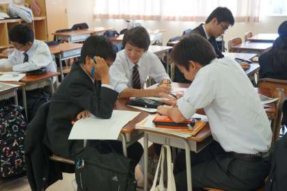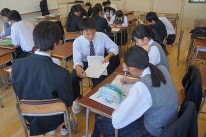 5時間目、2学年生徒は職場体験学習の発表会に向けて、同じ体験場所に行ったメンバーと話し合いを行っていました。