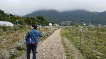 湖畔のコスモスがきれいです。