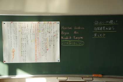 各クラス、教室の黒板や背面掲示板に色々と書いて、士気を高めています。
