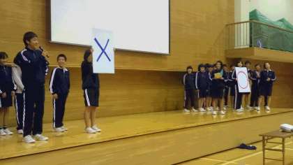 2組は○?クイズと自作の動画でした。とても凝っていました。