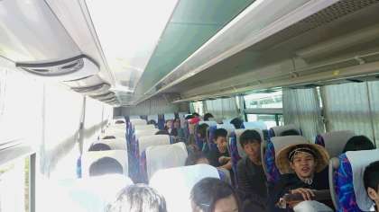 奥庭荘を出発しました。お土産をたくさん買いました。(副校長)