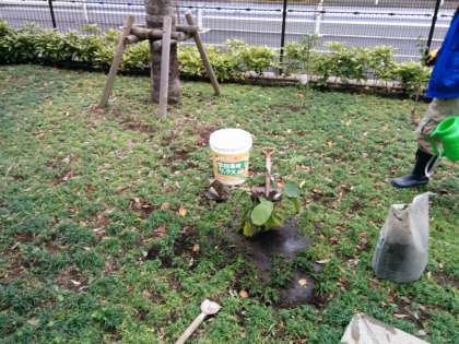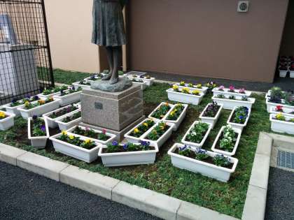 校舎北側に*白木蓮*や様々な花のプランターが設置されました。