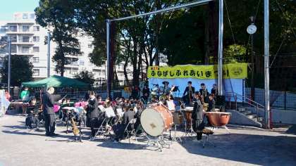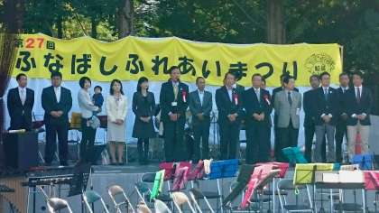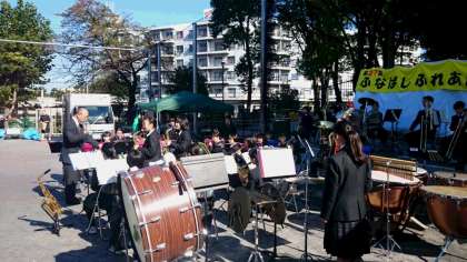 本日、希望ヶ丘公園でふなばしふれあいまつりが行われています。オープニングアクトを本校の吹奏楽部がつとめています。(副校長)
