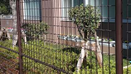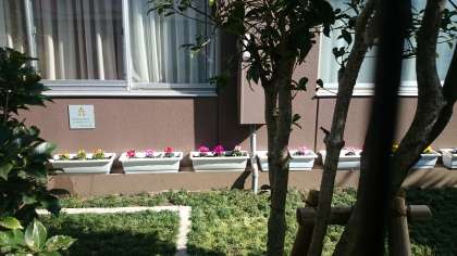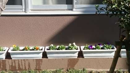 学校主事さんがプランターに花を植えて、校舎沿いに飾ってくださいました。