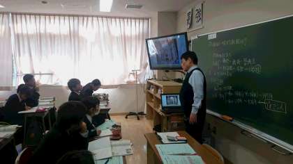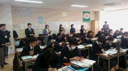 指導教諭の先生が東京都の研究授業を行いました。生徒たちは提示された資料をもとに、考えを深めていました。(副校長)