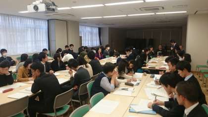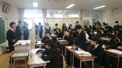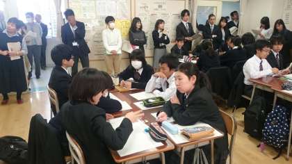 1年生で研究授業を行い、その後、研究協議会を行いました。