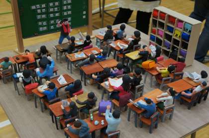 見た感じでどの先生の模型か分かるクラス風景や、細かく書いた板書など、細部までこだわっている模型でした。