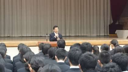 本日、都立千歳丘高等学校の小野村校長先生を講師としてお迎えし、
