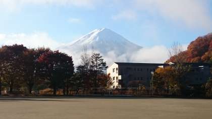 学園の窓からは富士山と河口湖の両方を見ることができます。