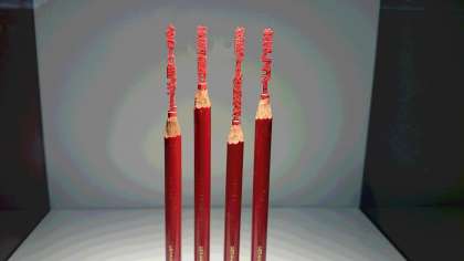 生徒たちは日テレの社内を見学しています。私は外で待機しています。案内をしてくださっているのは、船橋中の卒業生だそうです。写真は赤鉛筆の芯を彫った番組宣伝です。1文字3時間だそうです。(副校長)