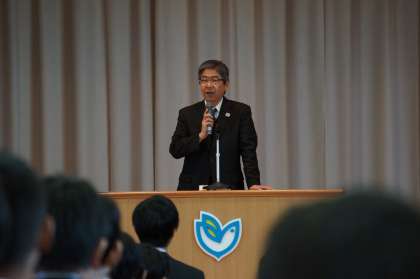 なお、インフルエンザなどの感染症の集団感染を予防するため、1月、2月の全校朝礼は行いません。特に3年生は高校入試の大切な時期ですから、健康管理をしっかりしてください。」