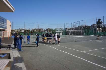 新学期初日ですが、運動場ではサッカー部や硬式テニス部や陸上部が頑張っています。