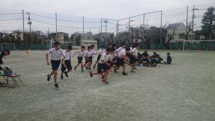 ペアになり、お互いにタイム等を声かけし、ペース配分を大切に走っていました。