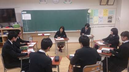 与えられた課題に対して、自分の考えを述べ、人の話を聞きながら、さらに考えを深めていくという話し合い活動の練習です。
