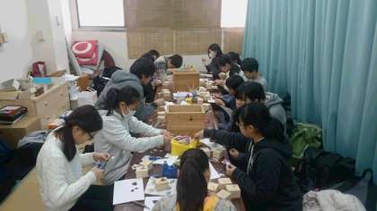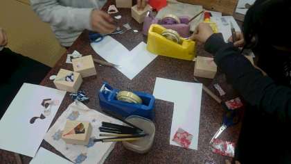 桐工芸の体験中です。集中しています。(副校長)