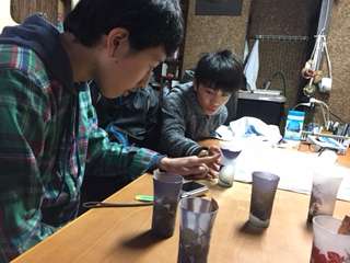 ガラスに砂を当てて、綺麗な色合いを出しています。