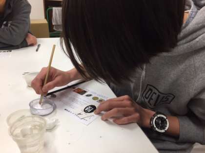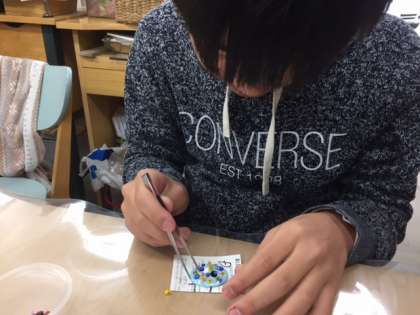 スタジオサガミでは七宝焼きの体験をしています。真剣にデザインを考えていました。