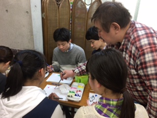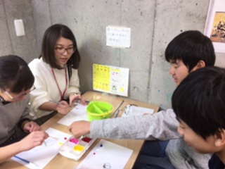 篠原まるよし風鈴です。風鈴の内側に色をつけていきます。